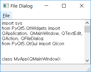 선택한 파일을 읽어서, setText() 메서드를 통해 텍스트 편집 위젯에 불러옵니다.